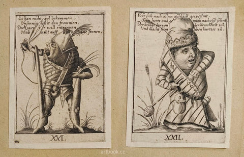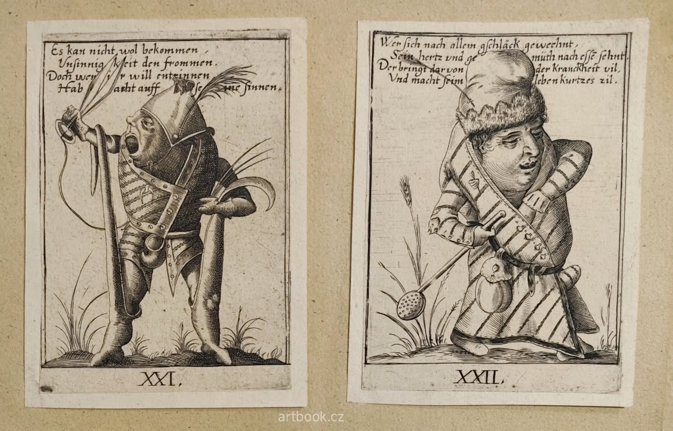Čtyři rytiny čísl. XXI-XXIV, (třetí stav) s německým čtyřverším v obraze, každá mědirytina s vyditelnými okraji, pod římskými čísly, seříznuto až k okraji desky.