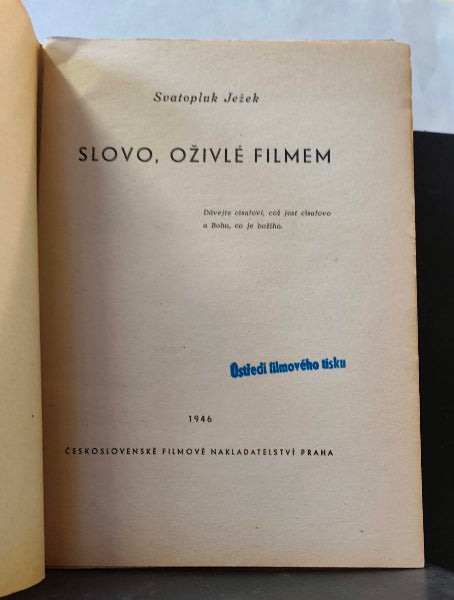 Praha; Československé filmové nakladatelství; 1946. 1. vyd. 69 s. Obálka ZDENĚK ROSSMANN. Razítko "Ústředí filmového tisku" na titulu. Pův. brož. 210x150 Na přední ob. flíček (barva) viz foto, jinak dobře zachováno.