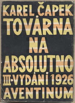 ČAPEK; KAREL: TOVÁRNA NA ABSOLUTNO. - 1926. 3. vyd. Podpis autora; obálka a ilustrace JOSEF ČAPEK.