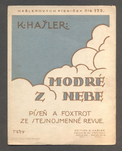 Ze stejnojmenné revue "Modré z nebe." - Hašlerových písniček č. 172. Praha, nakl. Hašlerových písniček, 1927. Noty. Složil KAREL HAŠLER. Dvojlist. 170x130 /ate/