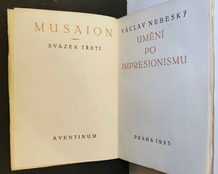 Musaion III. Praha Aventinum 1923. Vytiskli Kryl a Scotti v Novém Jičíně. Obálka. čtyřbarevná původní litografie RUDOLF KREMLIČKA. 61 s. a 32 čb. reprodukcí na přílohách (mj. Paul Gauguin; Vincent van Gogh; Paul Cézanne; Henri Matisse; Henri Rousseau; André Derain; Pablo Picasso). Pův. brož. 210x145 Ořízky a povrch ob. mírně od prachu.