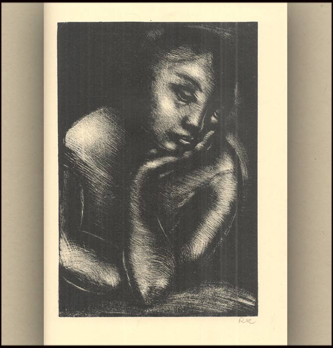 Rudolf Kremlička. Zamyšlené děvče. Litografie. 170x115 mm, sign. tužkou, monogram RK.