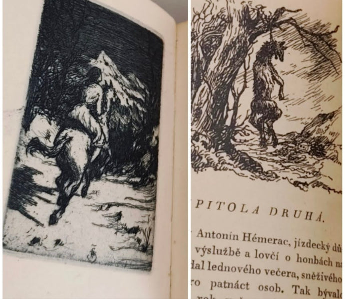 Praha, Arthur Novák, 1922.  Vytištěno v prosinci 1921 v dílnách "Grafie" v Praze.  59 s., dvě il. v textu a lept (83x52 mm) ve front. T. F. ŠIMON, ručně čísl. ex. 214/560. Pův. celokož. vazba, slepotisk. ražba, zlatá ořízka, zlacený titul na hřbetě.