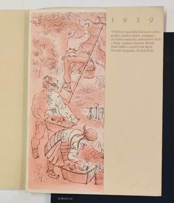 Státní uměleckoprůmyslová škola v Praze. Speciálka pro užitou grafiku, knižní umění a propagaci: profesor Jaroslav Benda. Deset tisků z ručních lisů školy. 4 původní litografie RUDOLF ŠVÁB, jednostranný tisk.