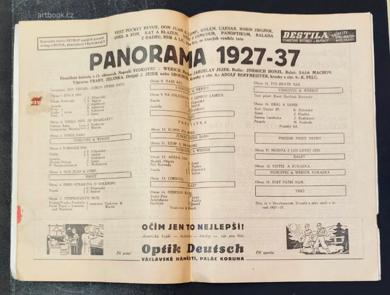 Nákladem vlastním, odpovědná redaktorka Staša Jílovská. 39 s., mj. obsahuje dvoulist s programem a obsazením "divadelní mozaiky" Panorama 1927-37, (výstupy a písně z desetileté Osvobozeného divadla).