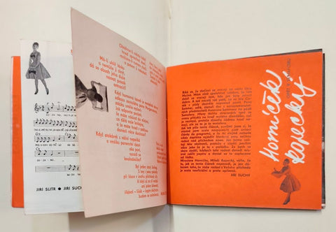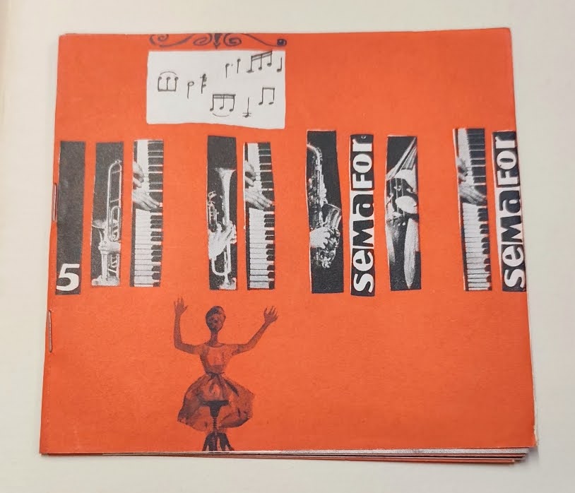 Pátý programový sešit. Divadlo Semafor; 1962. Redakční kruh: Běla Novotná; Milan Schulz; Jan Lukas; Jiří Suchý a Eva Svobodová. Grafická úprava BĚLA NOVOTNÁ. Nestr., 10 listů včetné ob. Pův. sešit. 130x140 mm