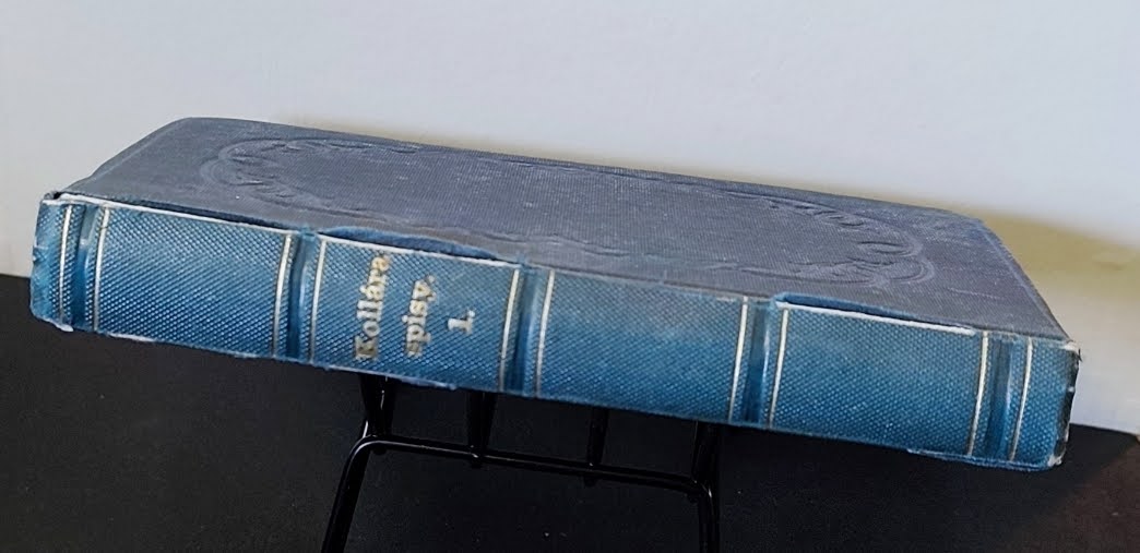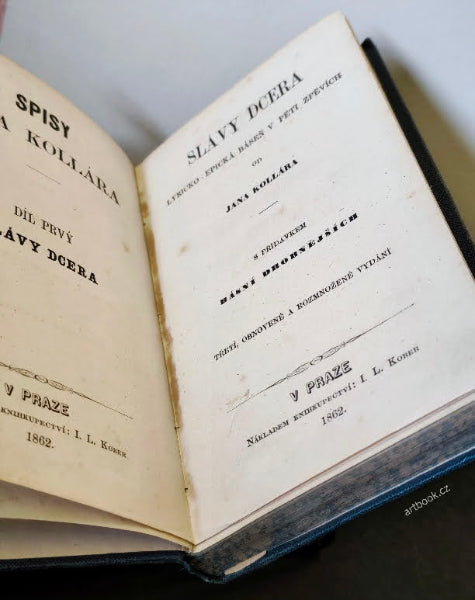 S přídavkem básní drobnějších. Třetí obnovené a rozmnožené vydání. Praha, Kober (Spisy Jana Kollára. sv. 1), 1862 Tisk Kat. Jeřábkové v Praze 1861. 428 s. Pův. celopl. vazba 175x115 Podél hřbetu plátno popraskané, na listech místy nahnědlé skvrny vlivem degradace pap.