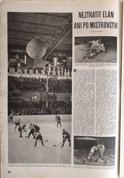 Čtyřstránková reportáž z mistrovství světa v ledním hokeji.