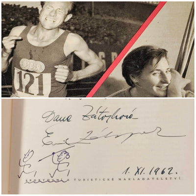 Rukopisné věnování a podpisy legendárních atletů, dat. 1.11.1962.