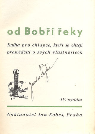 Podpis Jaroslava Foglara. Praha, Jan Kobes, (1940). IV. vyd. 190 s., čb. ilustrace v textu a 8 čb. příloh ZDENĚK BURIAN, podpis Jaroslava Foglara. Pův. polopl. vazba. 245x170 Vazba mírně povolená, dobře zachováno. /Ant/