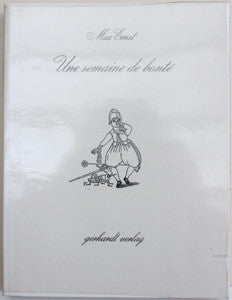 Die Weisse Woche. Ein Bilderbuch Von Güte; Liebe Und Menschlichkeit. Berlin; Gerhardt Verlag; 1963. Nestr. cca 200 s.; celostr. koláže tištěny po jedné straně. Pův. brož.; obálka chráněná průhledným plast. přebalem; kniha uložena do černého pap. pouzdra. 275x210 ...Une semaine de bonté ou les sept éléments capitaux erschien zuerst 1934 in Paris bei Editions Jeanne Bucher. Dieses werk erscheint in seiner deutschen erstausgabe als achte publikation des gerhardt verlages berlin in einer auflage von 2000 exemplaren. Die zwischentitel sowie der deutsche gesamttitel wurden vom autor übersetzt oder neu gefasst. Die motti zu jedem tag der woche wurden ebenfalls vom autor neu zusammengestellt. Die abbildung auf dem umschlag wurde von Max Ernst eigens für diese ausgabe collagiert.
