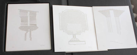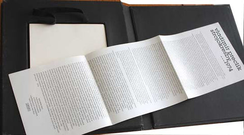 Text Jiří Valoch. 1974. 32 sítotisků 220x190; každý list je sign.; dat. a číslován 21/30. Uloženo v púv. celopl. deskách.