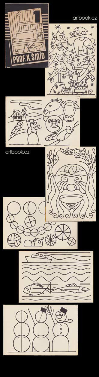 Praha II; J. Wihan; Kreslící potřeby; nedat. (kol. 1925). 5 pův. kartonových složek; v každé volné; jednostranně potištěné listy (45 l.). 280x195 Předlohy pro výtvarnou tvorbu nejmenších dětí.