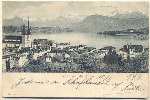 1900. Pohlednice. Švýcarsko. Cizina. Místopis. Dlouhá adresa.