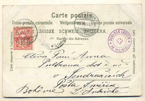 1900. Pohlednice. Švýcarsko. Cizina. Místopis. Dlouhá adresa.