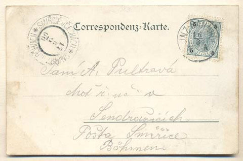 Pohlednice. 1900. Pozdrav z Welsu - Rakousko. Dlouhá adresa. Prošlá poštou; známka; razítko; popsaná. Dobrý stav.