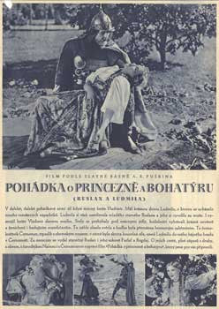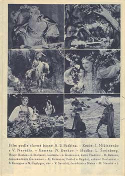 Filmový program. 1939. Ruský film slavné básně A. S. Puškina. Režie I. Nikitčenko; autor: anonym. Dvoulist 290x205; po rozložení 290x410 Utržený růžek (1x1 cm) v levém horním rohu; jinak dobrý stav.