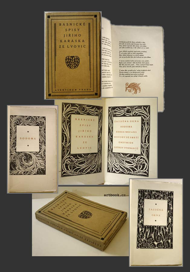 Zazděná okna. Sodoma. Sexus necans. Hovory se smrtí. Endymion. Ostrovy vyhnanců. Praha; Štorch-Marien; 1922. Edice Aventinum. 452 s.; úprava FRANTIŠEK KOBLIHA. Pův. brož. 215x135