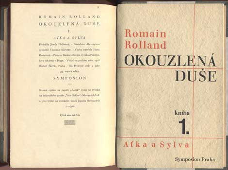 3. svazky. Praha; Škeřík; Symposion sv. 34; 1928. 1. sv. I. Aťka a Sylva. 193 s.; dřevoryt VLADIMÍR SILOVSKÝ; obálka vzadu vevázaná. 2. sv. II. Léto. 346 s. 3. sv. III. Matka a syn. Díl první. 225 s. IV. Matka a syn. Díl druhý. 157 s. Tyto výtisky mají č. 412/500 na domácím simili japanu. Polokožená vazba. 205x140