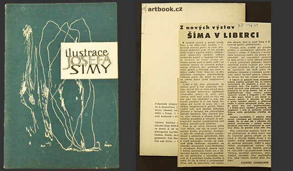 Výstava ilustrací Josefa Šímy 2./16. února 1964. Ústí nad Orlicí; Jednotný závodní klub ROH-Klub přátel výtvarného umění; 1964. (16) s.; text katalogu Jan Baleka; b. 'Mokrý obraz / Josefu Šímovi' Jaroslav Seifert; bibliografie; seznam vystavených prací; 2 celostr. il. Grafická úprava JAROSLAV CHEBEN. 185x130