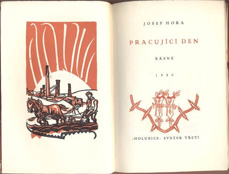 1. vyd. - Básně. Praha; Knihovna Holubice sv. 3.; 1920. 53 s.; úprava SLAVOBOJ TUSAR (obálka; dvoubarevné předsádky; frontispis; dvoubarevný titulní list). Horní růžky ob. utržené; povrch obou krajů hřbetu odřený; na zadní ob. dva malé kousky z okraje ztráta. Pův. brož. 205x135