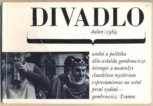 Praha; Svaz českosl. divadelních umělců; 1969. Řídil M. Lukeš; Z. Hořínek; E. Balvínová; J. Grossman; J. Pittermann; L. Suchařípa a I. Vojtěch. 107.s.; obálka a úprava LIBOR FÁRA; autoři foto HOUSKOVÁ; TŮMA; HALÁMEK... ; Witold Gombrowicz: Yvonna; princezna burgundská. Peter Brook: Prázdný prostor. Brož. 165x240 Časopis vycházel desetkrát do roka.