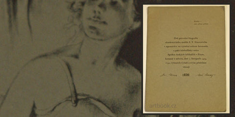 Dvě původní sign. litografie. Pro valnou hromadu a pátý bibliofilský večer SČB v Praze 2. listopadu 1929. Ex. 156/500. Dva volné listy v pův. pap. obálce. 255x190. F. V. Eisenreich působil zejména na Plzeňsku. /H/