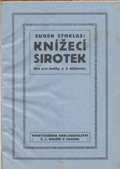 Loutkové divadlo - Hra pro loutky o 3 dějstvích. Choceň ; Č.J. Mojžíš; (1919). 39 s.Vlastnický přípis na přídeští 'Alšovo loutkové divadlo Hluchoněmých'.Dobová polopl. vazba s vev. obálkou. 185x135