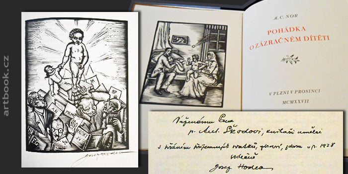 1927. Dřevoryty JOSEF HODEK; podpis A. C . Nora; věnování Josefa Hodka Ant. Škodovi.