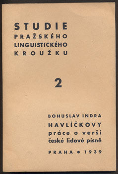 Studie pražského linguistického kroužku 2. Praha; Pražský linguistický kroužek; 1939. 228 s. Dodatky: Přehled bádání o českém verši folklorním po Havlíčkovi až do dnešní doby. (s.118-175). Začátky písní sbírky Ebenovy z r. 1842. Pův. brož. 230x155