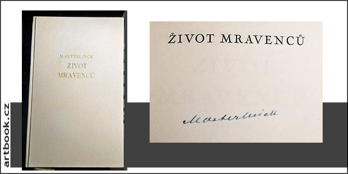 Podpis autora v přednostím exempláři. Praha; F. Topič; 1931. Vytiskla 'Politika' v Praze. Z francouzštiny (La Vie des fourmis; 1. vyd. 1930) přeložila B. Polívková. V úpravě a s nakl. zn. C. BOUDY. Ručně čísl. ex. 34 z 50 čísl. výtisků podepsaných autorem. Pův. celopergamenová vazba se zlatou ražbou na přední desce a na hřbetě. Velmi dobrý stav.