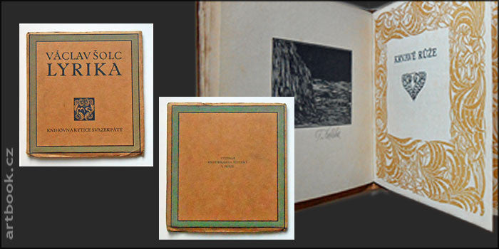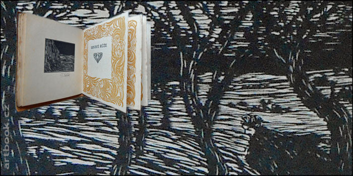 Z PERLOVÉ ŠŇŮRY. GHAZELY. KRVAVÉ RŮŽE. 4 sign. dřevoryty; FRANTIŠEK KOBLIHA. Roudnice; Milan Svoboda; 1912. Nestr. [30] listů. Pátý svazek edice Kytice. Exemplář z 300 nečísl. výtisků na 'similijaponu'. Původní dřevorytová výzdoba (4 sign. na přílohách; 4 viněty a ornamentace indiv. provedená pro každou dvoustranu); úprava a obálka FRANTIŠEK KOBLIHA. Vytiskl KAREL DYRYNK (celkem 325 exemplářů). Původní šitá brož; vázal L. BRADÁČ. 160x155 Mírné nahnědlé flíčky na posledním listu (vakát); jinak velmi dobře zachováno!
