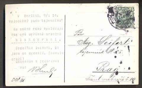 Pohlednice. Prošlá poštou; známka; razítko; popsaná s podpisem Václava Hrubého - redaktor 'Vlasti'. 142x90
