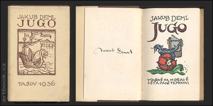 Tasov; Jakub Deml; 1936. 91 s.; obálka; ručně kolor. titl. a 4 celostr. ilustrace MARKO RAŠICA; tiskl Jan Mucha ve Velkém Meziříčí; podpis Jakuba Demla proti titulu. Pův. vazba s obálkou. 180x120
