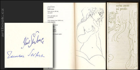 Podpisy Jaroslava Seiferta a Karla Šiktance.Z moderní milostné poezie české. Praha; Mladá fronta; 1969. 1. vyd. Uspořádal a edičně připravil Vladimír Karfík. 156 s.; ilustrace OTA JANEČEK; vazba LUCIE WEISBERGROVÁ. Pův. celopl. vazba. 210x105