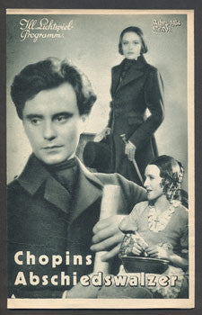 Ill. Lichtspiel-Programm. Nr. 201. Praha; Schulz; 1934. Román Chopinova mládí. Režie Geza von Bolvary. Hlubotisk. Složený arch. 230x145. - Výborný stav.