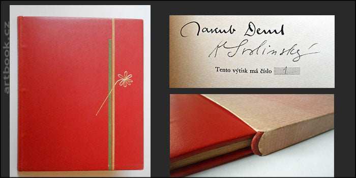 Exemplář č. 1/200Praha; Melantrich; 1940. Edice Krásné tisky Melantricha. 41 s.; 4 celostr. suché jehly KAREL SVOLINSKÝ; v tiráži podpisy Jakuba Demla a Karla Svolinského; ex. číslo 1 z celkového počtu 200 vydaných a číslovaných na ručním papíře Old Holland. Pův. umělecká celokožená vazba s obálkou vzadu vev.; pův. ochranným pouzdrem. 230x180 Velmi dobrý stav!
