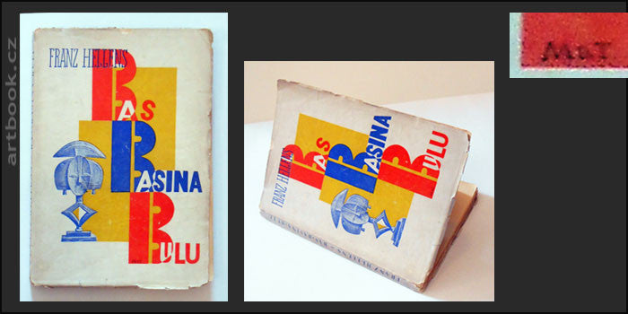 Obálka KAREL TEIGE Román. Praha; Aventinum; 1926. 170 s.; obálka KAREL TEIGE (na obálce sign. MaT = Mrkvička a Teige; v tiráži uveden jen Karel Teige). Pův. brož. 200x140 Z horního okraje přední obálky kousek pap. odtržený; ohyby v rozích; podél přesahujících okrajů drobná natržení; ze zadní obálky utržený horní roh; zadní obálka drží u bloku z jedné třetiny; horní i dolní okraj hřbetu otřepený. Nevyskytuje se!