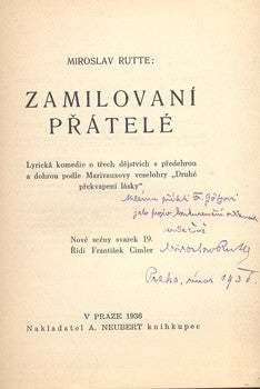 RUTTE; MIROSLAV: ZAMILOVANÍ PŘÁTELÉ. - 1936. Podpis autora. Nové scény. /divadlo/ 350 CZK = cca. 12 EUR