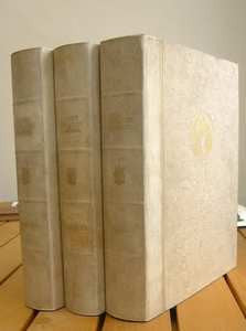 Die göttliche Komödie. Zürich; Amalthea; 1921. XLIV; 428; 434 a 444 s. 3 díly; 60 celostr. mont. barevných ilustrací FANZ VON BAYROS. V prvním svazku podpis F. Bayrose pod tištěnou dedikací. Pův. celopergamenové vazby. Výtisk č-703/1100. ...Farbenphantasien von Franz von Bayros. Italienisch / deutscher Paralleltext. Illustrations show Art Nouveau influence. PRODÁNO/SOLD bayros