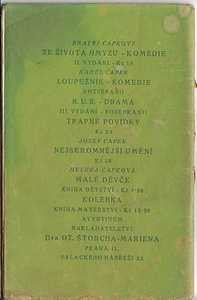 1. vyd. - Praha; Aventinum; 1922. 48 s.; obálka (lino) a nakladatelská značka JOSEF ČAPEK. Pův. brož. 165x110 - 1. samostatné knižní vyd.; jinak už in: Zářivé hlubiny a jiné prózy; 1916.