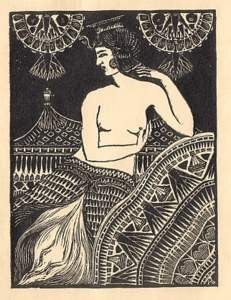 Praha; soukromý tisk; 1928. (14) s.; upravil a vyzdobil F. KOBLIHA (dřevoryt na frontispice; rámce na titulním listě a text. stranách); dvoubarevný tisk. Pův. brož. 200x155 ...vytiskl Vl. Burda na similijapanu. /H/