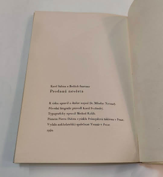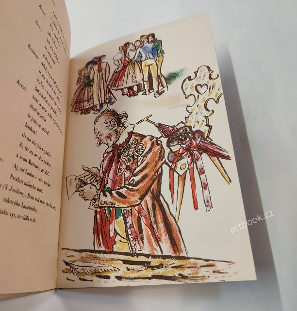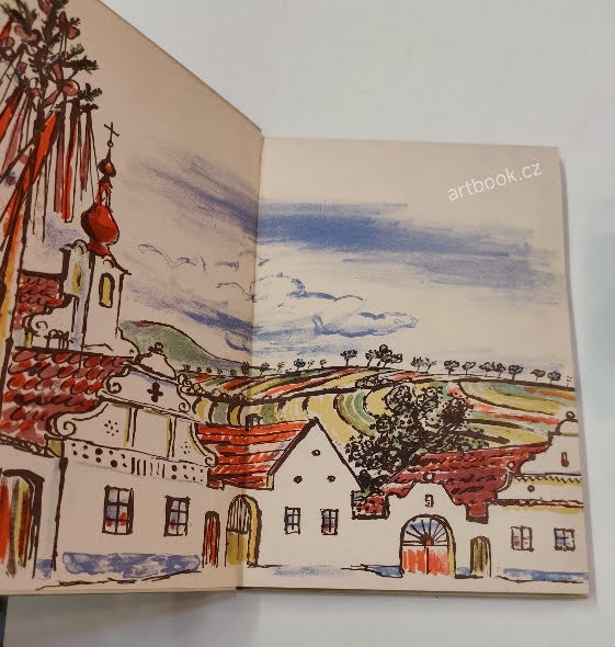 Praha; Vesmír; 1940. 61 s.; pův. barevné litografie (předsádky; frontispice a 9 celostr.) KAREL SVOLINSKÝ. Podpis K. Svolinského na titulním listu. Typograficky upravil METHOD KALÁB. Dvojbarevný tisk. Pův. pap. vazba zdobená barev. kresbou KS na přední desku. Na předtitulnim listu mont. exlibris původní majitelky, manželky arch. Karla Lodra. 280x195 Horní okraj hřbetu drobně naražený.