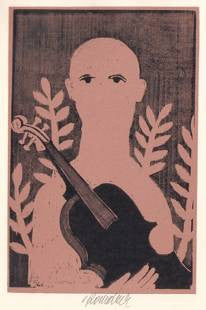 HLUSICKA; JIRI.VLADIMÍR KOMÁREK. Lidt om en czekisk grafiker og hans trasnit. Exlibristen; Frederikshavn 1981. Nestránkováno; text Jiří Hlušička (3) s.; fotogr. portrét Vl. Komárka na frontispise a 10 dřevorytů (8 s barevným podtiskem) z nichž každý je signovaný a montován na samostatném listě. Vydáno celkem 201 čísl. výtisků; tento exemplář bez čísla. Pův. brož. 300x230 PRODÁNO