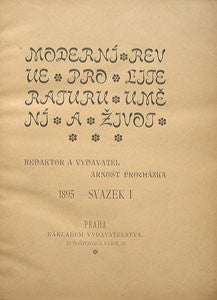 Pro literaturu umění a život. Praha; Procházka; 1894-95. 140; 140 s. Dobová polokožená vazba s vev. obálkami (mimo prvního čísla je vzadu vevázáno všech 11 obálek včetně jejich zadních částí). 240x185 PRODÁNO / SOLD