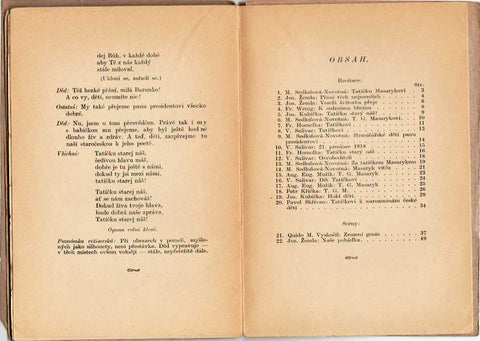 Pěti příspěvky, je zastoupena M. Sedloňová-Novotná, pozdější autorka krátkých povídek v sešitech "Punťovy příhody" ze 40 let. Čtyřmi básněmi přispěl V. Salivar z nichž jednu nazval "Tatíčkovi", další "Dík tatíčkovi" a další "Osvoboditeli". Po Fr. Homolovi se též už žádné další literární dílo nedochovalo, dvě básně v tomto sborníku nazval "Tatíčkovi" a "Tatíčku starý náš". Ve sborníku dostali prostor i zkušení autoři: Fr. Wenig, Quido M. Vyskočil a Josef Žemla.