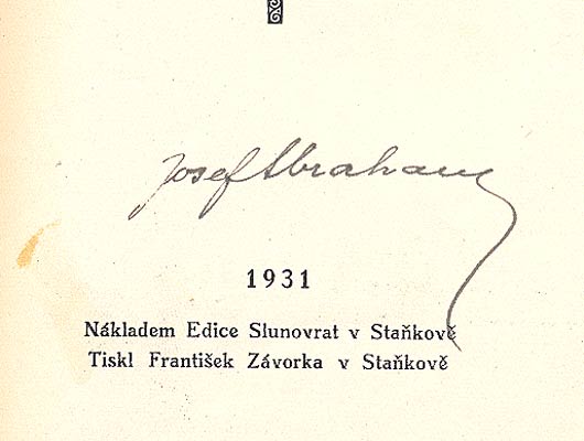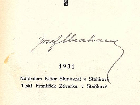 Podpis autora - Staňkov, Edice Slunovrat, 1931. 47 s., podpis autora, tiskl Fr. Zázvorka v Staňkově. Pův. brož. 180x120 Nerozřezáno. /Antik/