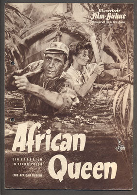 Illustrierte Film-Bühne. Nr. 4252. München, 1951. Film USA, Velká Británie. Režie John Huston. Hrají: Humphrey Bogart, Katharine Hepburn, Robert Morley, Peter Bull, Theodore Bikel, Walter Gotell, Richard Marner, Errol John, Peter Swanwick ... 4 s. Dvoulist. 270x190. U okraje dvakrát perforováno, dobře zachováno. /film/program/