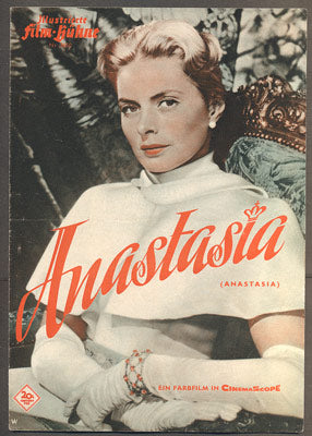 Illustrierte Film-Bühne. Nr. 3650. München, 1956. Film USA. Režie Anatole Litvak. Hrají: Ingrid Bergman, Yul Brynner, Helen Hayes, Akim Tamiroff, Martita Hunt, Felix Aylmer, Sacha Pitoëff, Ivan Desny, Karel Štěpánek, Peter Sallis ... 4 s. Dvoulist. 270x190. Velmi dobře zachováno. /film/program/