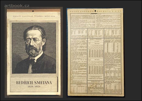Vydáno ke stoletému jubileu Bedřicha Smetany, každý list s vyobrazením dobových fotografií, ilustrací a dokumentů ze života slavného skladatele. Týdenní a měsíční kalendářia.